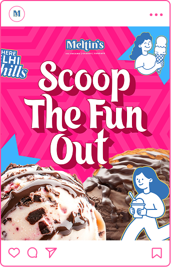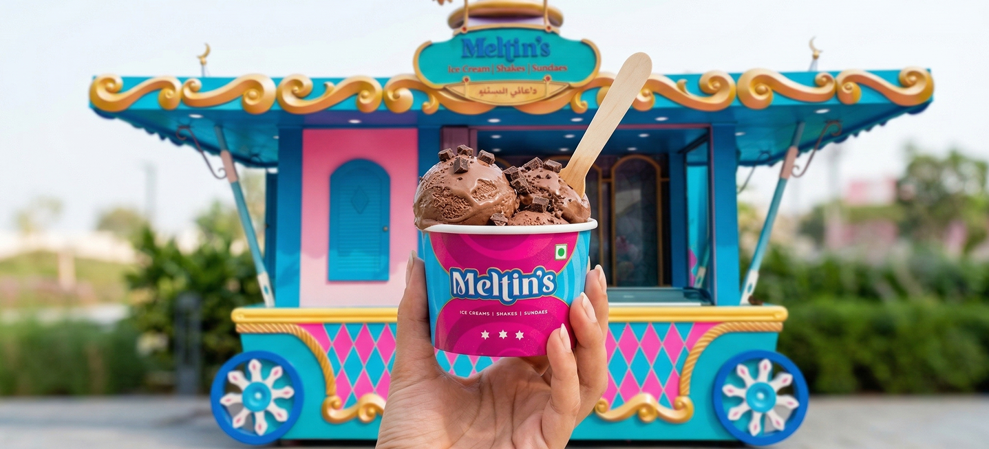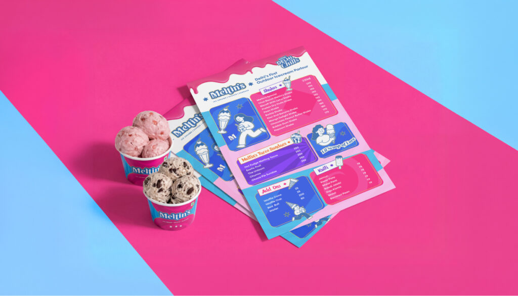 Nestled in Dwarka, New Delhi, Meltin’s launched as the city’s first outdoor ice cream parlour, designed not just to sell desserts but to create an experience-led destination. With a fixed outdoor setup, the brand needed to attract attention and drive footfall in a competitive, high-visibility environment.
