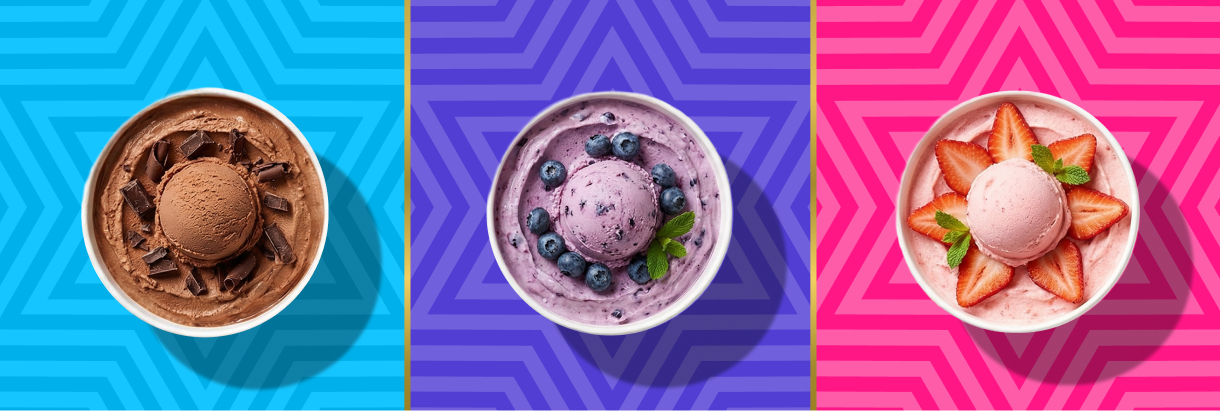 The in-store packaging was designed to extend the overall brand experience beyond just serving. Every element, from cups to tubs, was created to feel vibrant, engaging, and aligned with the brand’s larger-than-life personality.