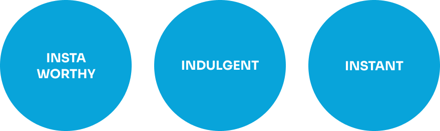 The brand was built around three key principles: insta-worthy, indulgent, and instant, guiding decisions across identity and experience.