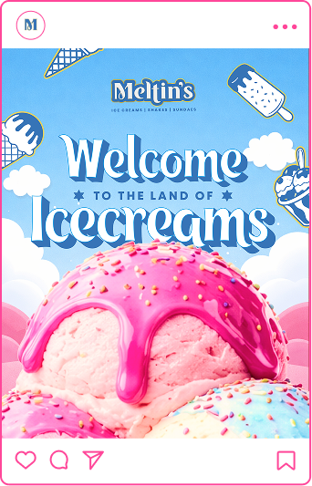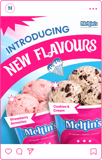 The challenge was visibility and recall. Meltin’s had to act as a visual anchor while maintaining clarity across a wide range of offerings. With dessert consumption being impulse-driven, the brand needed to feel instantly noticeable, indulgent, and shareable to drive both trials and repeat visits.